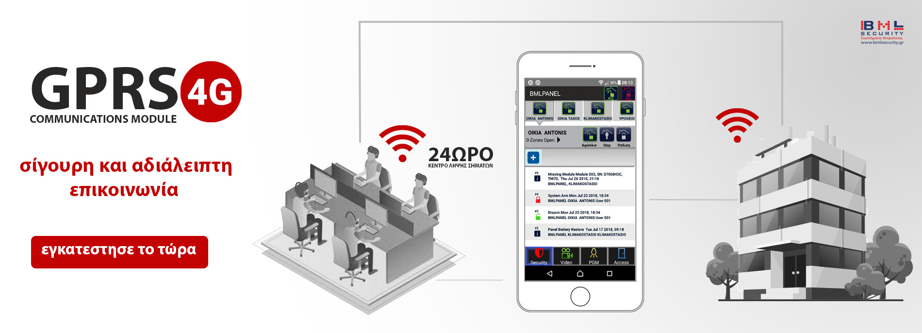 Η επικοινωνία του συστήματος ασφαλείας με το κέντρο λήψης σημάτων βασίζεται σχεδόν αποκλειστικά στα επίγεια τηλεφωνικά δίκτυα και δυστυχώς αποτελεί τον πιο αδύναμο κρίκο στην αλυσίδα της ασφάλειας. Οι αλλαγές στο τοπίο των σταθερών επίγειων τηλεφωνικών γραμμών, η παράλληλη χρησιμοποίηση του internet μέσα από τις επίγειες γραμμές και η εξέλιξη των διαρρηκτών στον τρόπο δράσης τους, δημιούργησαν μια επιτακτική ανάγκη για αδιάλειπτη επικοινωνία των συστημάτων με το Κέντρο Λήψης Σημάτων.