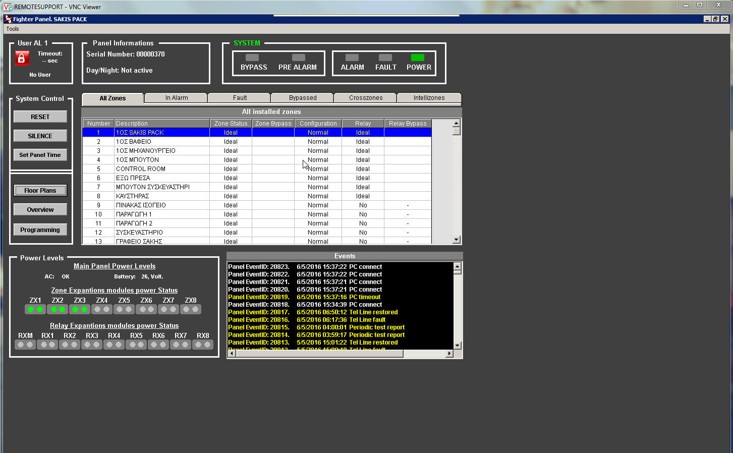 Για τον τοπικό χειρισμό του συστήματος πυρανίχνευσης επιλέχθηκαν LCD πληκτρολόγια με εύχρηστο Ελληνικό μενού για τον χειρισμό από τον τελικό χρήστη, ενώ για τον απομακρυσμένο έλεγχο και τη διαχείρισή του εγκαταστάθηκαν module επικοινωνίας μέσω TCP/IP καθώς επίσης και το ειδικό λογισμικό Smart View σε υπολογιστή του κτηρίου, από το οποίο ο υπεύθυνος του χώρου μπορεί να ελέγξει και να παραμετροποιήσει όλο το σύστημα πυρανίχνευσης.