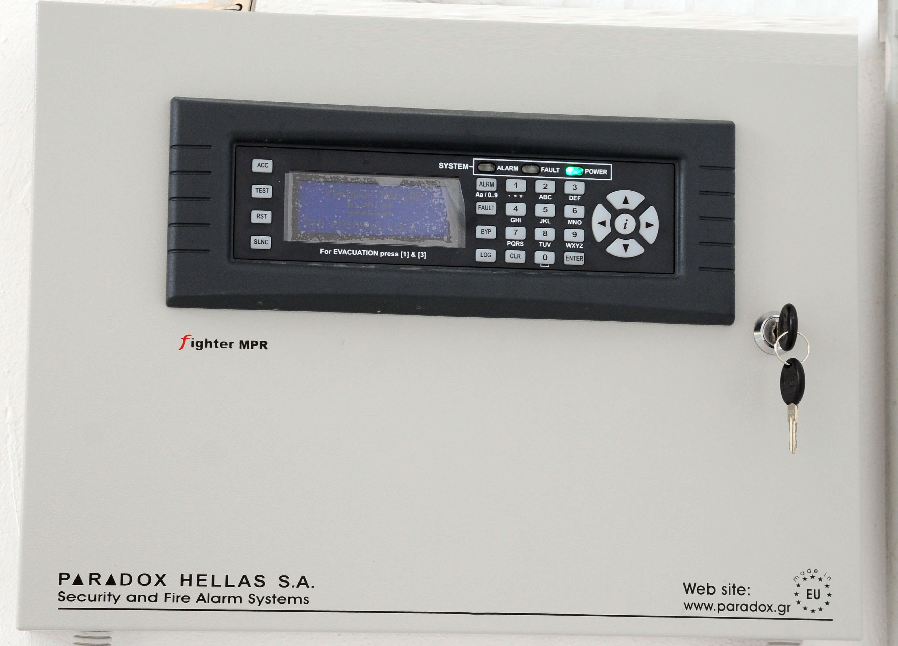 Για την πυρασφάλεια του κτηρίου εγκαταστάθηκε ένα εξελιγμένο σύστημα πυρανίχνευσης του κατασκευαστικού οίκου της PARADOX Hellas, αποτελούμενο από Διευθυνσιοδοτούμενους φωτοηλεκτρικούς και θερμοδιαφορικούς ανιχνευτές καπνού & φωτιάς. Σειρήνες αναγγελίας πυρκαγιάς τοποθετήθηκαν εξωτερικά και εσωτερικά του κτηρίου, καθώς επίσης και υαλόθραυστα μπουτόν για την αναγγελία πυρκαγιάς σε περίπτωση συμβάντος.
